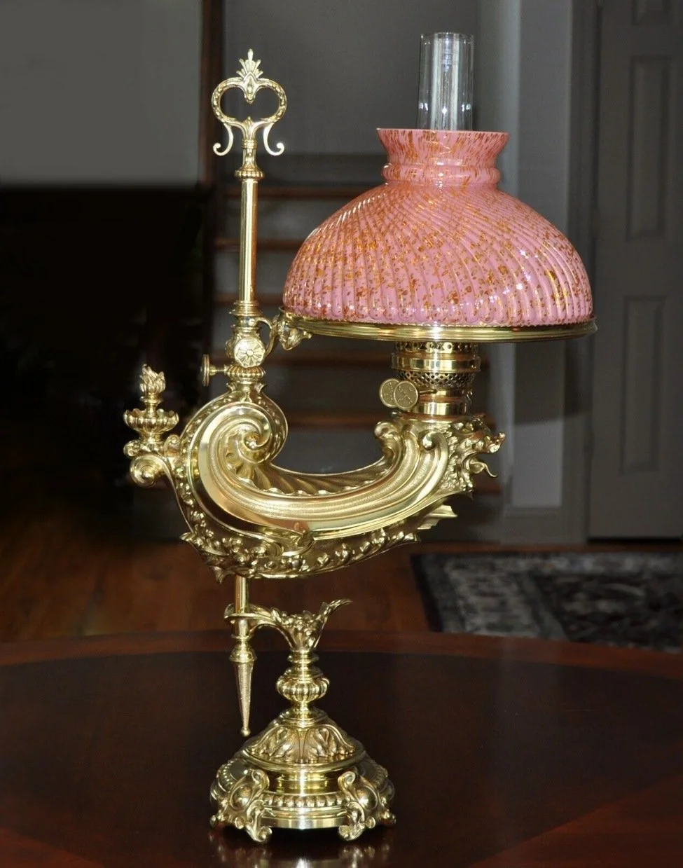 Rare Harvard Student Oil Lamp Weighing More Than 15 Pounds with Highly Detailed, Chased Brass, Patented 1887